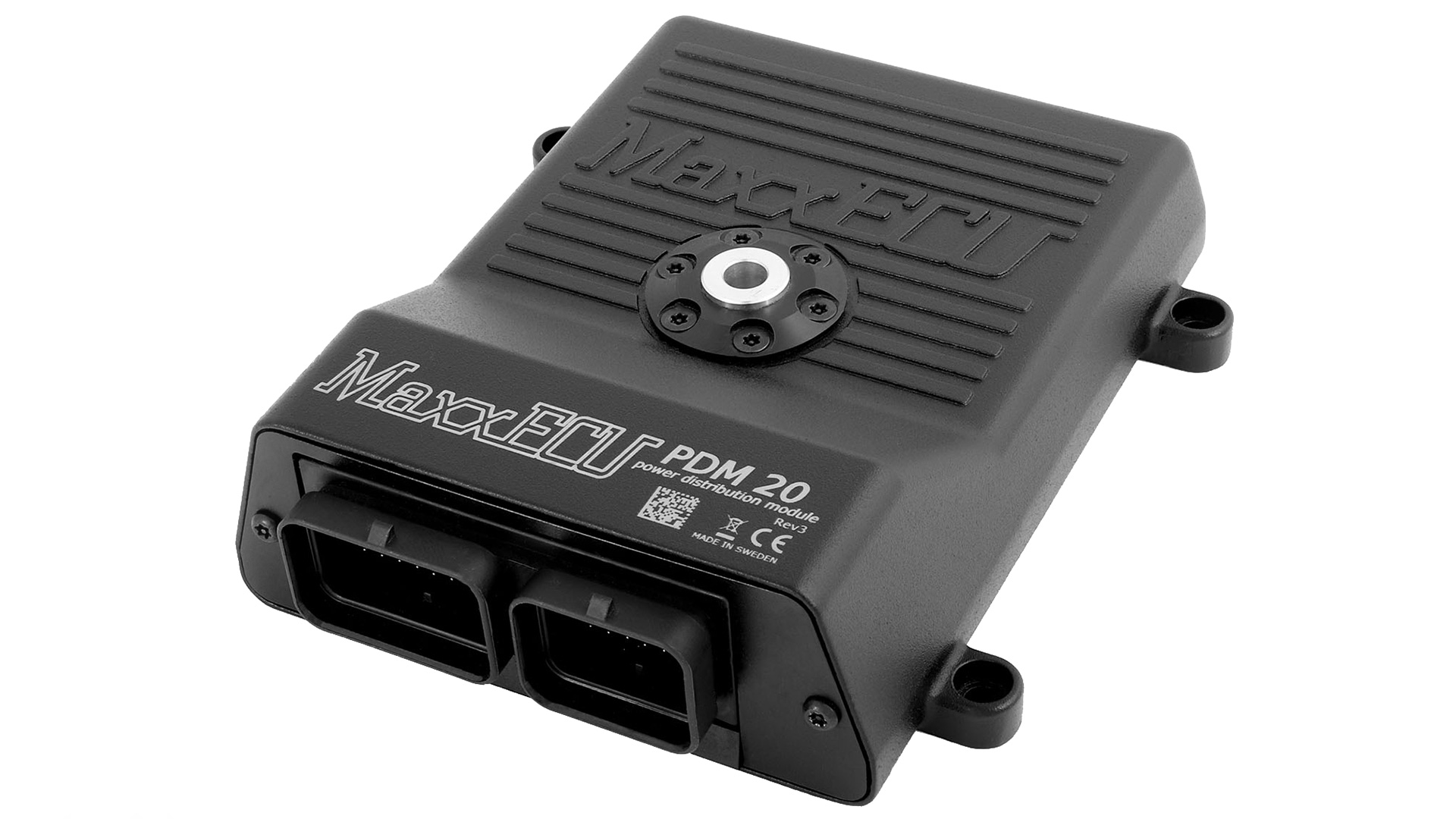 MaxxECU PDM20 är en avancerad kraftenhet som fungerar med alla MaxxECU enheter och är avsedd för att ersätta säkringar och reläer på ett modernt sätt.
